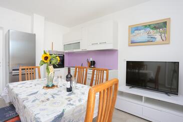 Appartamento può accogliere 6 ospiti. I letti sono disposti nelle camere da letto che sono 3, su 56m2. Gli ospiti hanno a disposizione il proprio terrazzo per godere nelle calde serate estive. Dall'appartamento si gode di una vista sul mare. Si può preparare il cibo utilizzando il barbecue comune. Nell'unità di alloggio si possono portare gli animali domestici con un pagamento supplementare.