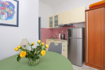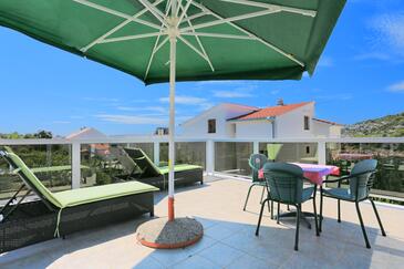 Appartamento può accogliere 6 ospiti. I letti sono disposti nelle camere da letto che sono 3, su 56m2. Gli ospiti hanno a disposizione il proprio terrazzo per godere nelle calde serate estive. Dall'appartamento si gode di una vista sul mare. Si può preparare il cibo utilizzando il barbecue comune. Nell'unità di alloggio si possono portare gli animali domestici con un pagamento supplementare.