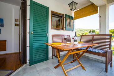 Appartamento può accogliere 4 ospiti. I letti sono disposti nelle camere da letto che sono 2, su 43m2. Gli ospiti hanno a disposizione il proprio terrazzo per godere nelle calde serate estive. Si può preparare il cibo utilizzando il barbecue comune.