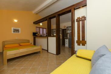 Monolocale può accogliere 2 ospiti. I letti sono disposti nelle camere da letto che sono 1, su 30m2. Gli ospiti hanno a disposizione il proprio terrazzo per godere nelle calde serate estive. Dal monolocale si gode di una vista sul mare. Si può preparare il cibo utilizzando il barbecue comune.