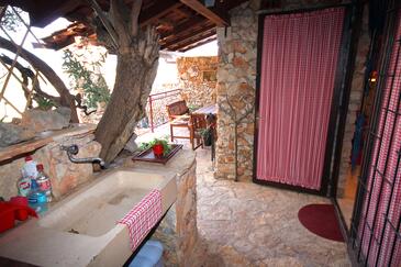 Monolocale può accogliere 2 ospiti. I letti sono disposti nelle camere da letto che sono 1, su 30m2. Gli ospiti hanno a disposizione il proprio terrazzo per godere nelle calde serate estive. Dal monolocale si gode di una vista sul mare. Si può preparare il cibo utilizzando il barbecue comune.