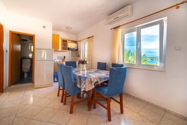 Appartamento può accogliere 4 ospiti. I letti sono disposti nelle camere da letto che sono 2, su 59m2. Gli ospiti hanno a disposizione il proprio terrazzo per godere nelle calde serate estive. Dall'appartamento si gode di una vista sul mare. Si può preparare il cibo utilizzando il barbecue comune.