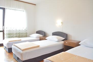Appartamento può accogliere 8 ospiti. I letti sono disposti nelle camere da letto che sono 3, su 94m2. Gli ospiti hanno a disposizione il proprio balcone per godere delle calde serate estive. Dall'appartamento si gode di una vista sul mare. Si può preparare il cibo utilizzando il barbecue comune. Durante il soggiorno gli ospiti possono utilizzare la piscina comune. Nell'unità di alloggio si possono portare gli animali domestici con un pagamento supplementare.