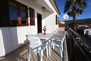 Appartamento può accogliere 4 ospiti. I letti sono disposti nelle camere da letto che sono 2, su 43m2. Gli ospiti hanno a disposizione il proprio terrazzo per godere nelle calde serate estive. Dall'appartamento si gode di una vista sul mare. Si può preparare il cibo utilizzando il barbecue comune.