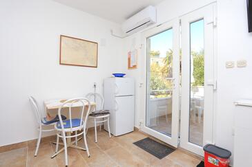 Appartamento può accogliere 6 ospiti. I letti sono disposti nelle camere da letto che sono 3, su 60m2. Gli ospiti hanno a disposizione il proprio terrazzo per godere nelle calde serate estive. Dall'appartamento si gode di una vista sul mare. Si può preparare il cibo utilizzando il barbecue comune. Nell'unità di alloggio si possono portare gli animali domestici con un pagamento supplementare. Le stanze dell'unità d'alloggio non sono connesse in un insieme.