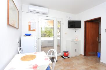 Appartamento può accogliere 6 ospiti. I letti sono disposti nelle camere da letto che sono 3, su 60m2. Gli ospiti hanno a disposizione il proprio terrazzo per godere nelle calde serate estive. Dall'appartamento si gode di una vista sul mare. Si può preparare il cibo utilizzando il barbecue comune. Nell'unità di alloggio si possono portare gli animali domestici con un pagamento supplementare. Le stanze dell'unità d'alloggio non sono connesse in un insieme.