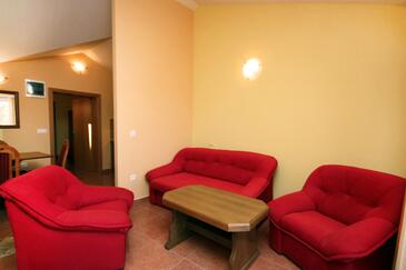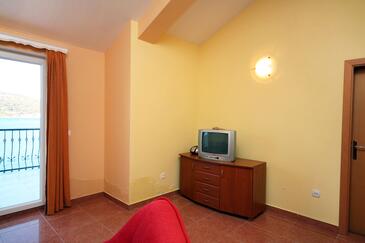 Appartamento può accogliere 5 ospiti. I letti sono disposti nelle camere da letto che sono 2, e nella camera di soggiorno, su 55m2. Gli ospiti hanno a disposizione il proprio terrazzo per godere nelle calde serate estive. Dall'appartamento si gode di una vista sul mare. Si può preparare il cibo utilizzando il barbecue comune. Nell'unità di alloggio si possono portare gli animali domestici con un pagamento supplementare. Arrivati nell'unità d'alloggio i clienti devono pagare un deposito (il prezzo è indicato sul sito).