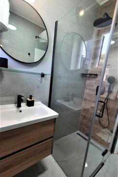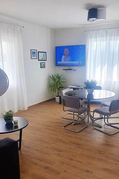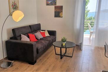 Appartamento può accogliere 6 ospiti. I letti sono disposti nelle camere da letto che sono 2, e nella camera di soggiorno, su 64m2. Gli ospiti hanno a disposizione il proprio terrazzo per godere nelle calde serate estive. Dall'appartamento si gode di una vista sul mare. Si può preparare il cibo utilizzando il barbecue comune.