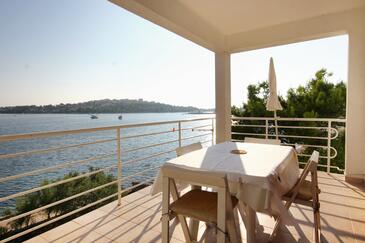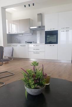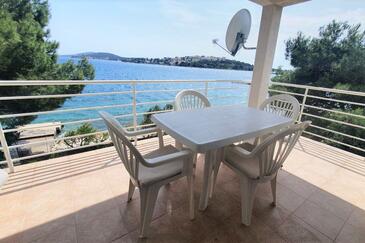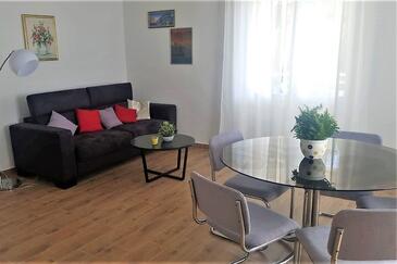 Appartamento può accogliere 6 ospiti. I letti sono disposti nelle camere da letto che sono 2, e nella camera di soggiorno, su 64m2. Gli ospiti hanno a disposizione il proprio terrazzo per godere nelle calde serate estive. Dall'appartamento si gode di una vista sul mare. Si può preparare il cibo utilizzando il barbecue comune.