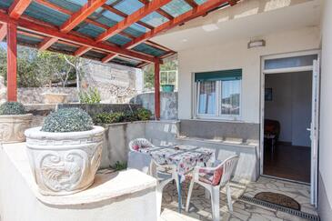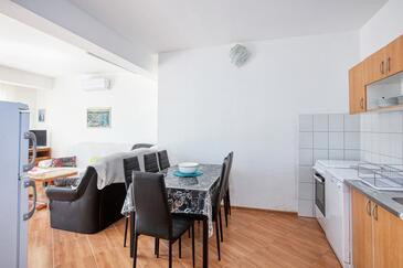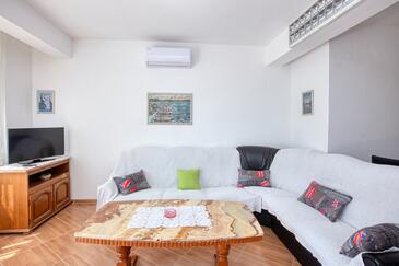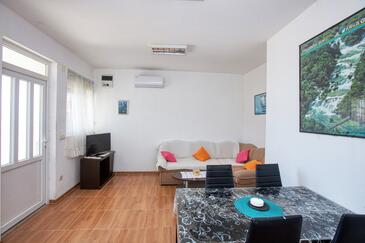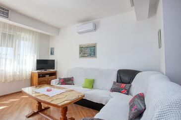 Appartamento può accogliere 8 ospiti. I letti sono disposti nelle camere da letto che sono 3, e nella camera di soggiorno, su 63m2. Gli ospiti hanno a disposizione il proprio terrazzo per godere nelle calde serate estive. Dall'appartamento si gode di una vista sul mare. Si può preparare il cibo utilizzando il barbecue comune. Nell'unità di alloggio si possono portare gli animali domestici con un pagamento supplementare. L'unità d'alloggio ha delle stanze separate dal resto dell'unità.