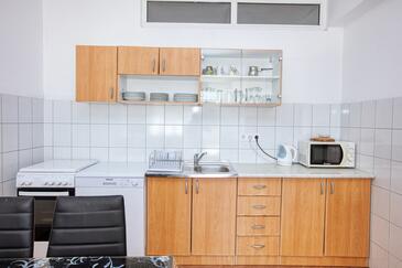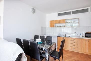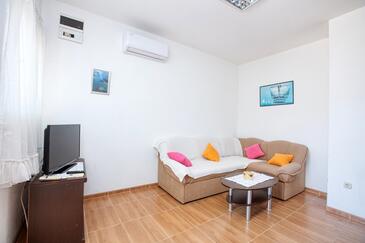 Appartamento può accogliere 8 ospiti. I letti sono disposti nelle camere da letto che sono 3, e nella camera di soggiorno, su 63m2. Gli ospiti hanno a disposizione il proprio terrazzo per godere nelle calde serate estive. Dall'appartamento si gode di una vista sul mare. Si può preparare il cibo utilizzando il barbecue comune. Nell'unità di alloggio si possono portare gli animali domestici con un pagamento supplementare. L'unità d'alloggio ha delle stanze separate dal resto dell'unità.