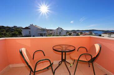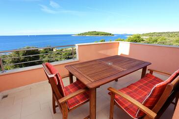 Appartamento può accogliere 6 ospiti. I letti sono disposti nelle camere da letto che sono 2, e nella camera di soggiorno, su 57m2. Gli ospiti hanno a disposizione il proprio balcone per godere delle calde serate estive. Dall'appartamento si gode di una vista sul mare. Si può preparare il cibo utilizzando il barbecue comune.