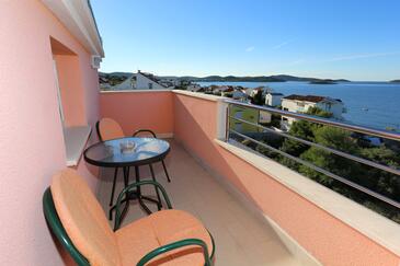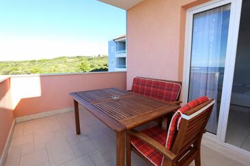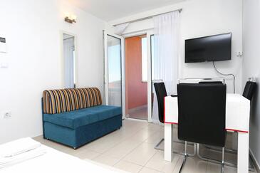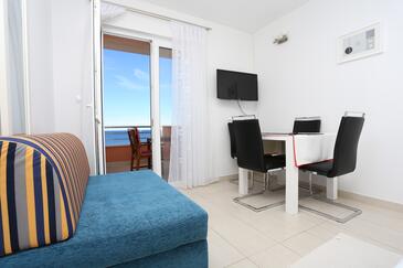 Appartamento può accogliere 6 ospiti. I letti sono disposti nelle camere da letto che sono 2, e nella camera di soggiorno, su 57m2. Gli ospiti hanno a disposizione il proprio balcone per godere delle calde serate estive. Dall'appartamento si gode di una vista sul mare. Si può preparare il cibo utilizzando il barbecue comune.