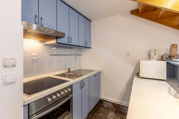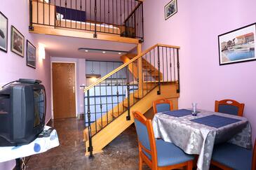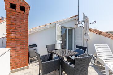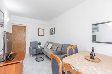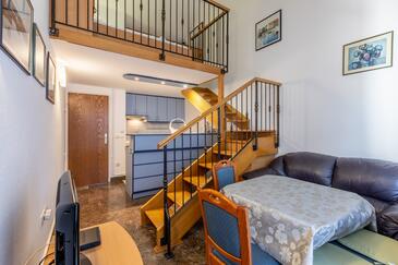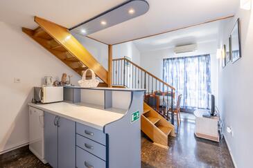 Appartamento può accogliere 5 ospiti. I letti sono disposti nelle camere da letto che sono 2, e nella camera di soggiorno, su 49m2. Gli ospiti hanno a disposizione il proprio terrazzo per godere nelle calde serate estive. Dall'appartamento si gode di una vista sul mare. Si può preparare il cibo utilizzando il barbecue comune.