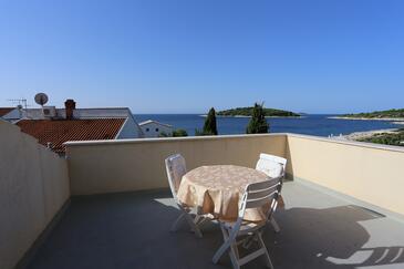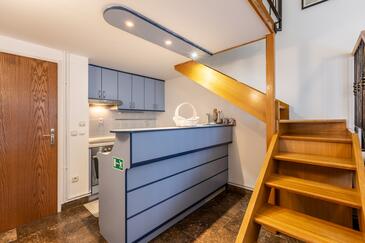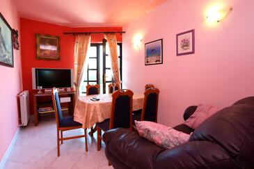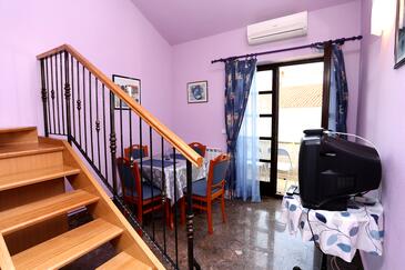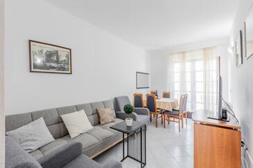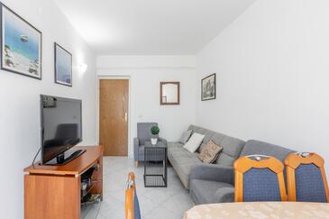 Appartamento può accogliere 5 ospiti. I letti sono disposti nelle camere da letto che sono 2, e nella camera di soggiorno, su 49m2. Gli ospiti hanno a disposizione il proprio terrazzo per godere nelle calde serate estive. Dall'appartamento si gode di una vista sul mare. Si può preparare il cibo utilizzando il barbecue comune.