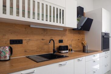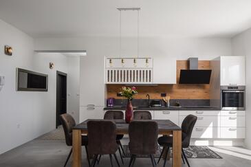 Casa può accogliere 14 ospiti. I letti sono disposti nelle camere da letto che sono 6, e nella camera di soggiorno, su 143m2. Gli ospiti hanno a disposizione il proprio terrazzo per godere nelle calde serate estive. Dalla casa si gode di una vista sul mare. Per il piacere totale e il relax c'è il barbecue privato solo per gli ospiti di quest'alloggio. Durante il soggiorno gli ospiti si possono rilassare nella piscina privata. Arrivati nell'unità d'alloggio i clienti devono pagare un deposito (il prezzo è indicato sul sito).