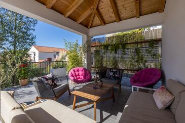 Casa può accogliere 14 ospiti. I letti sono disposti nelle camere da letto che sono 6, e nella camera di soggiorno, su 143m2. Gli ospiti hanno a disposizione il proprio terrazzo per godere nelle calde serate estive. Dalla casa si gode di una vista sul mare. Per il piacere totale e il relax c'è il barbecue privato solo per gli ospiti di quest'alloggio. Durante il soggiorno gli ospiti si possono rilassare nella piscina privata. Arrivati nell'unità d'alloggio i clienti devono pagare un deposito (il prezzo è indicato sul sito).