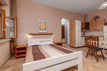 Appartamento può accogliere 4 ospiti. I letti sono disposti nelle camere da letto che sono 2, su 41m2. Gli ospiti hanno a disposizione il proprio terrazzo per godere nelle calde serate estive. Si può preparare il cibo utilizzando il barbecue comune. Nell'unità di alloggio si possono portare gli animali domestici con un pagamento supplementare. Le stanze dell'unità d'alloggio non sono connesse in un insieme.