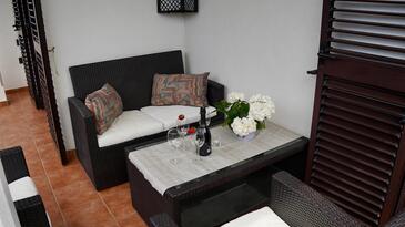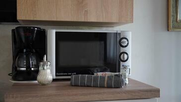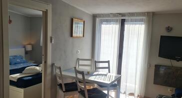 Appartamento può accogliere 4 ospiti. I letti sono disposti nelle camere da letto che sono 2, su 46m2. Gli ospiti hanno a disposizione il proprio terrazzo per godere nelle calde serate estive. Si può preparare il cibo utilizzando il barbecue comune. Nell'unità di alloggio si possono portare gli animali domestici con un pagamento supplementare.