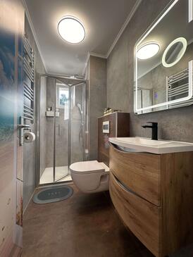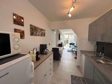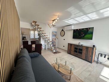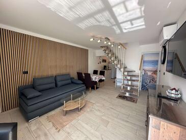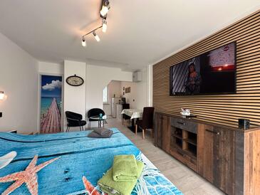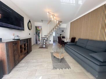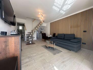 Appartamento può accogliere 6 ospiti. I letti sono disposti nelle camere da letto che sono 2, e nella camera di soggiorno, su 60m2. Gli ospiti hanno a disposizione il proprio terrazzo per godere nelle calde serate estive. Per il piacere totale e il relax c'è il barbecue privato solo per gli ospiti di quest'alloggio. Nell'unità di alloggio si possono portare gli animali domestici con un pagamento supplementare.