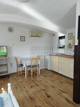 Monolocale può accogliere 2 ospiti. I letti sono disposti nelle camere da letto che sono 1, su 29m2. Gli ospiti hanno a disposizione il proprio terrazzo per godere nelle calde serate estive. Dal monolocale si gode di una vista sul mare.