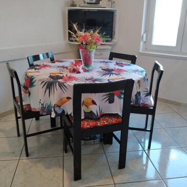Appartamento può accogliere 5 ospiti. I letti sono disposti nelle camere da letto che sono 2, su 43m2. Gli ospiti hanno a disposizione il proprio terrazzo per godere nelle calde serate estive. Dall'appartamento si gode di una vista sul mare. Si può preparare il cibo utilizzando il barbecue comune. Nell'unità di alloggio si possono portare gli animali domestici con un pagamento supplementare. Le stanze dell'unità d'alloggio non sono connesse in un insieme.