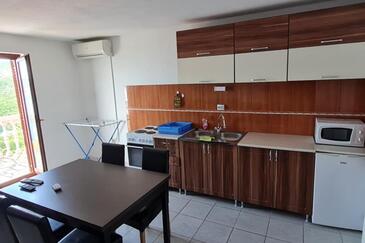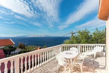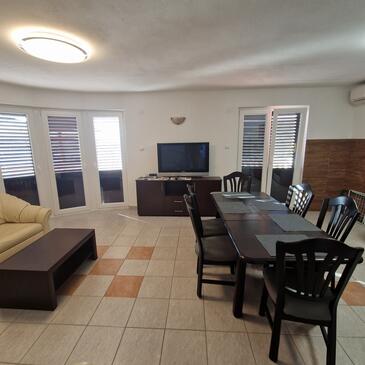 Appartamento può accogliere 7 ospiti. I letti sono disposti nelle camere da letto che sono 3, e nella camera di soggiorno, su 58m2. Gli ospiti hanno a disposizione il proprio terrazzo per godere nelle calde serate estive. Dall'appartamento si gode di una vista sul mare. Si può preparare il cibo utilizzando il barbecue comune.