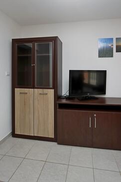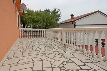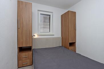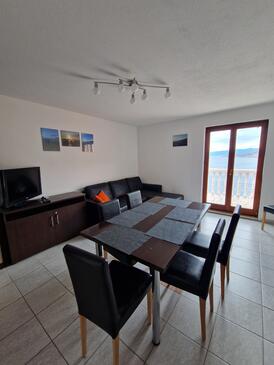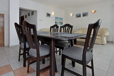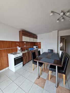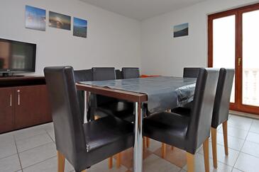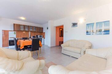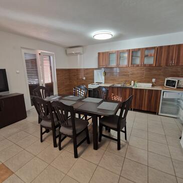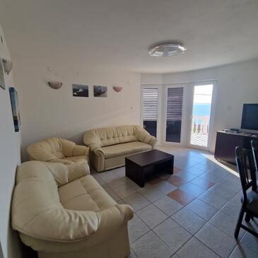 Appartamento può accogliere 7 ospiti. I letti sono disposti nelle camere da letto che sono 3, e nella camera di soggiorno, su 58m2. Gli ospiti hanno a disposizione il proprio terrazzo per godere nelle calde serate estive. Dall'appartamento si gode di una vista sul mare. Si può preparare il cibo utilizzando il barbecue comune.