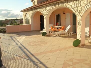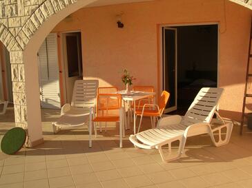 Monolocale può accogliere 6 ospiti. I letti sono disposti nelle camere da letto che sono 2, su 49m2. Gli ospiti hanno a disposizione il proprio terrazzo per godere nelle calde serate estive. Dal monolocale si gode di una vista sul mare. Si può preparare il cibo utilizzando il barbecue comune.
