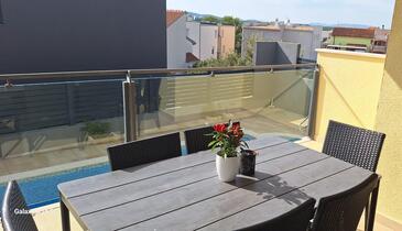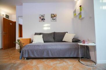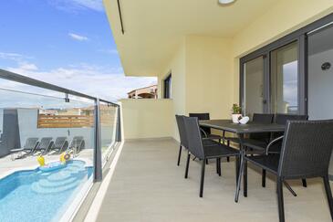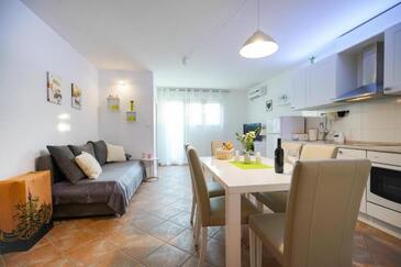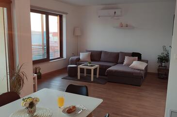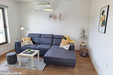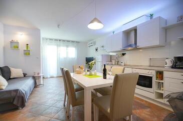 Appartamento può accogliere 5 ospiti. I letti sono disposti nelle camere da letto che sono 2, e nella camera di soggiorno, su 63m2. Gli ospiti hanno a disposizione il proprio terrazzo per godere nelle calde serate estive. Dall'appartamento si gode di una vista sul mare. Si può preparare il cibo utilizzando il barbecue comune. Durante il soggiorno gli ospiti possono utilizzare la piscina comune.