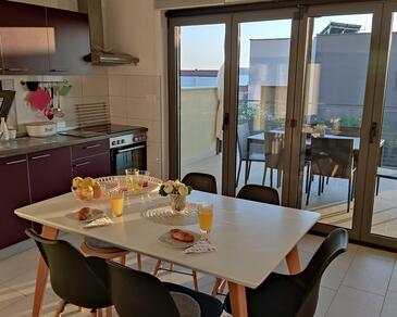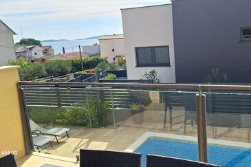 Appartamento può accogliere 5 ospiti. I letti sono disposti nelle camere da letto che sono 2, e nella camera di soggiorno, su 63m2. Gli ospiti hanno a disposizione il proprio terrazzo per godere nelle calde serate estive. Dall'appartamento si gode di una vista sul mare. Si può preparare il cibo utilizzando il barbecue comune. Durante il soggiorno gli ospiti possono utilizzare la piscina comune.