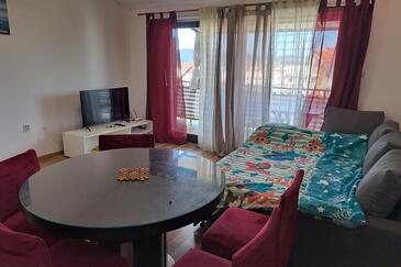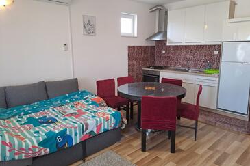 Appartamento può accogliere 6 ospiti. I letti sono disposti nelle camere da letto che sono 2, su 64m2. Gli ospiti hanno a disposizione il proprio terrazzo per godere nelle calde serate estive. Si può preparare il cibo utilizzando il barbecue comune.