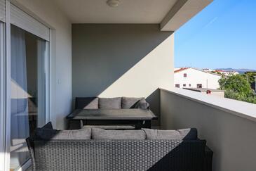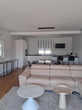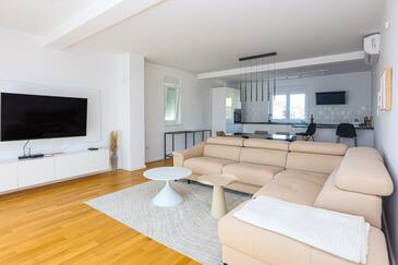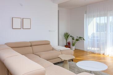 Appartamento può accogliere 6 ospiti. I letti sono disposti nelle camere da letto che sono 2, e nella camera di soggiorno, su 88m2. Gli ospiti hanno a disposizione il proprio balcone per godere delle calde serate estive. Dall'appartamento si gode di una vista sul mare.