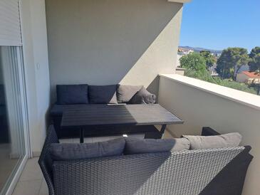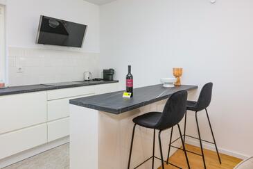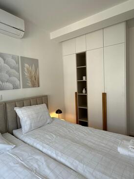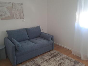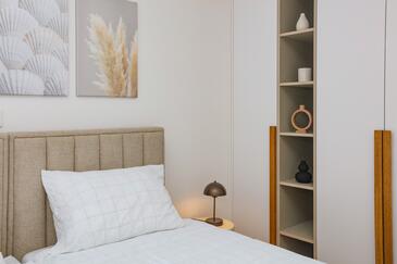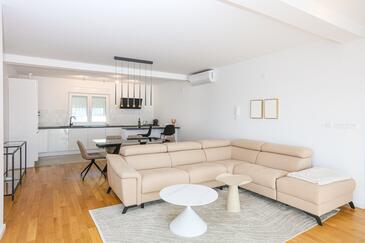 Appartamento può accogliere 6 ospiti. I letti sono disposti nelle camere da letto che sono 2, e nella camera di soggiorno, su 88m2. Gli ospiti hanno a disposizione il proprio balcone per godere delle calde serate estive. Dall'appartamento si gode di una vista sul mare.