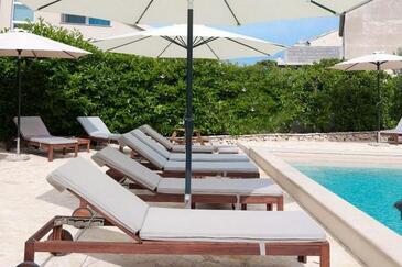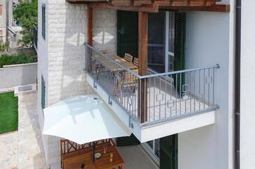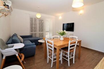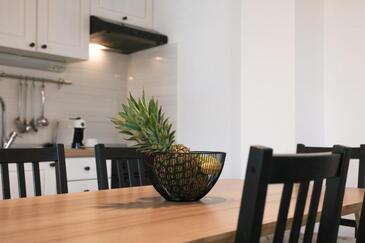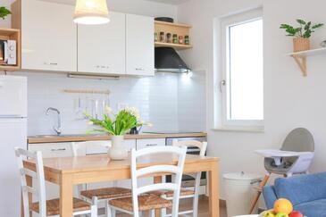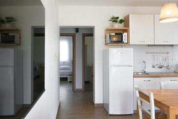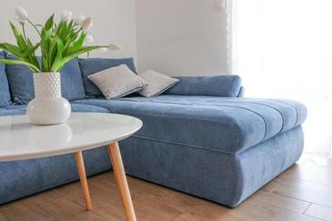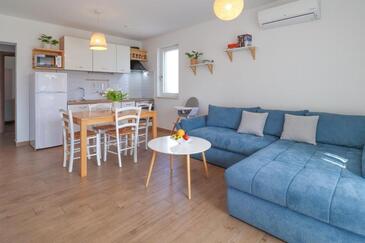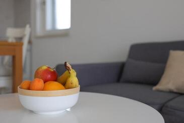 Appartamento può accogliere 5 ospiti. I letti sono disposti nelle camere da letto che sono 2, e nella camera di soggiorno, su 55m2. Gli ospiti hanno a disposizione il proprio terrazzo per godere nelle calde serate estive. Si può preparare il cibo utilizzando il barbecue comune. Durante il soggiorno gli ospiti possono utilizzare la piscina comune.