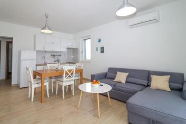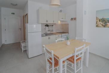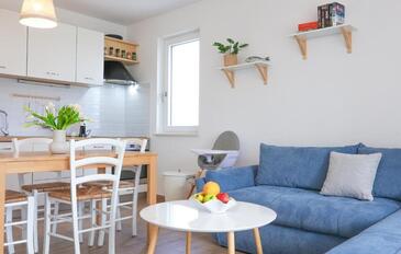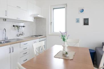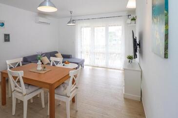Appartamento può accogliere 5 ospiti. I letti sono disposti nelle camere da letto che sono 2, e nella camera di soggiorno, su 55m2. Gli ospiti hanno a disposizione il proprio terrazzo per godere nelle calde serate estive. Si può preparare il cibo utilizzando il barbecue comune. Durante il soggiorno gli ospiti possono utilizzare la piscina comune.