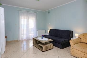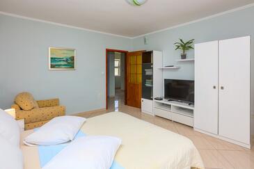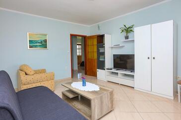 Appartamento può accogliere 6 ospiti. I letti sono disposti nelle camere da letto che sono 2, e nella camera di soggiorno, su 70m2. Gli ospiti hanno a disposizione il proprio terrazzo per godere nelle calde serate estive. Dall'appartamento si gode di una vista sul mare. Si può preparare il cibo utilizzando il barbecue comune. Nell'unità di alloggio si possono portare gli animali domestici con un pagamento supplementare.