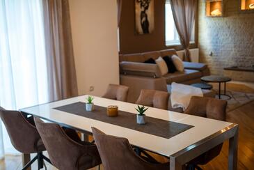 Casa può accogliere 7 ospiti. I letti sono disposti nelle camere da letto che sono 3, su 181m2. Gli ospiti hanno a disposizione il proprio terrazzo per godere nelle calde serate estive. Per il piacere totale e il relax c'è il barbecue privato solo per gli ospiti di quest'alloggio. Durante il soggiorno gli ospiti si possono rilassare nella piscina privata. Nell'unità di alloggio si possono portare gli animali domestici senza alcun pagamento supplementare. Arrivati nell'unità d'alloggio i clienti devono pagare un deposito (il prezzo è indicato sul sito).