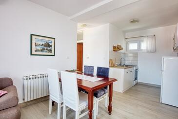 Appartamento può accogliere 4 ospiti. I letti sono disposti nelle camere da letto che sono 2, su 46m2. Gli ospiti hanno a disposizione il proprio terrazzo per godere nelle calde serate estive. Dall'appartamento si gode di una vista sul mare. Si può preparare il cibo utilizzando il barbecue comune.