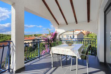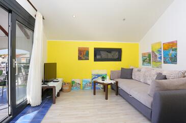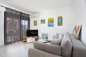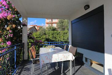Appartamento può accogliere 4 ospiti. I letti sono disposti nelle camere da letto che sono 2, su 46m2. Gli ospiti hanno a disposizione il proprio terrazzo per godere nelle calde serate estive. Si può preparare il cibo utilizzando il barbecue comune.