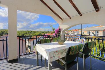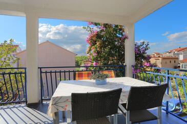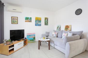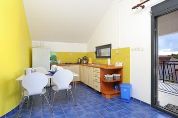 Appartamento può accogliere 4 ospiti. I letti sono disposti nelle camere da letto che sono 2, su 46m2. Gli ospiti hanno a disposizione il proprio terrazzo per godere nelle calde serate estive. Si può preparare il cibo utilizzando il barbecue comune.