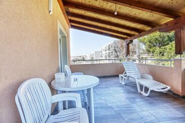 Appartamento può accogliere 6 ospiti. I letti sono disposti nelle camere da letto che sono 2, e nella camera di soggiorno, su 52m2. Gli ospiti hanno a disposizione il proprio balcone per godere delle calde serate estive. Dall'appartamento si gode di una vista sul mare. Si può preparare il cibo utilizzando il barbecue comune. Nell'unità di alloggio si possono portare gli animali domestici senza alcun pagamento supplementare.