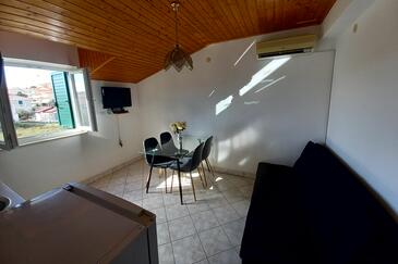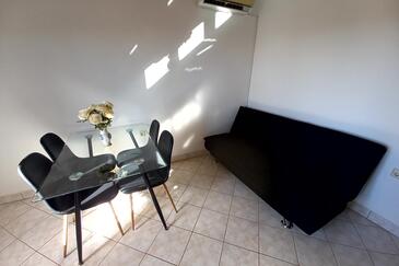 Appartamento può accogliere 5 ospiti. I letti sono disposti nelle camere da letto che sono 2, su 50m2. Gli ospiti hanno a disposizione il proprio balcone per godere delle calde serate estive. Dall'appartamento si gode di una vista sul mare. Si può preparare il cibo utilizzando il barbecue comune.
