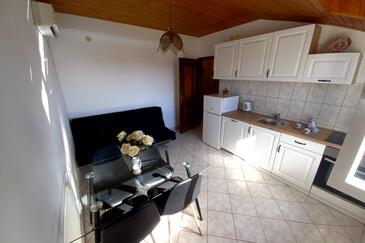 Appartamento può accogliere 5 ospiti. I letti sono disposti nelle camere da letto che sono 2, su 50m2. Gli ospiti hanno a disposizione il proprio balcone per godere delle calde serate estive. Dall'appartamento si gode di una vista sul mare. Si può preparare il cibo utilizzando il barbecue comune.