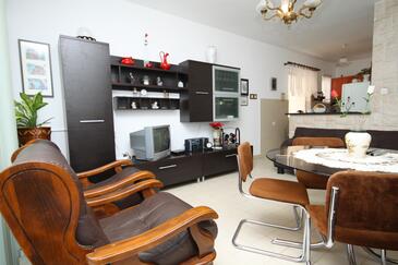 Appartamento può accogliere 5 ospiti. I letti sono disposti nelle camere da letto che sono 2, e nella camera di soggiorno, su 60m2. Gli ospiti hanno a disposizione il proprio terrazzo per godere nelle calde serate estive. Dall'appartamento si gode di una vista sul mare. Si può preparare il cibo utilizzando il barbecue comune.