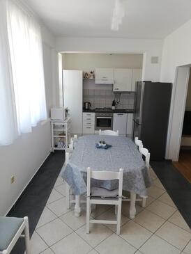 Appartamento può accogliere 8 ospiti. I letti sono disposti nelle camere da letto che sono 2, e nella camera di soggiorno, su 85m2. Gli ospiti hanno a disposizione il proprio terrazzo per godere nelle calde serate estive. Dall'appartamento si gode di una vista sul mare. Si può preparare il cibo utilizzando il barbecue comune.