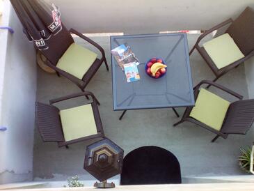 Appartamento può accogliere 5 ospiti. I letti sono disposti nelle camere da letto che sono 2, su 33m2. Gli ospiti hanno a disposizione il proprio terrazzo per godere nelle calde serate estive. Si può preparare il cibo utilizzando il barbecue comune.