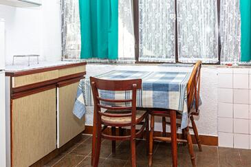Appartamento può accogliere 5 ospiti. I letti sono disposti nelle camere da letto che sono 2, su 48m2. Gli ospiti hanno a disposizione il proprio terrazzo per godere nelle calde serate estive. Si può preparare il cibo utilizzando il barbecue comune.