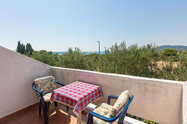Appartamento può accogliere 5 ospiti. I letti sono disposti nelle camere da letto che sono 2, su 48m2. Gli ospiti hanno a disposizione il proprio terrazzo per godere nelle calde serate estive. Si può preparare il cibo utilizzando il barbecue comune.