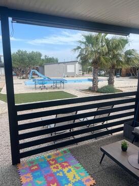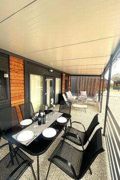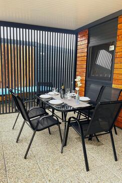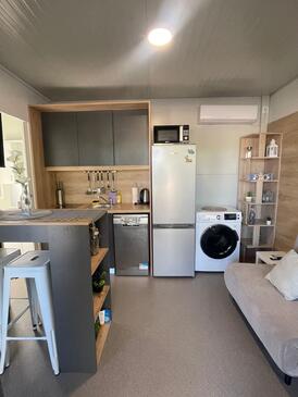 Appartamento può accogliere 5 ospiti. I letti sono disposti nelle camere da letto che sono 2, e nella camera di soggiorno, su 19m2. Gli ospiti hanno a disposizione il proprio terrazzo per godere nelle calde serate estive. Per il piacere totale e il relax c'è il barbecue privato solo per gli ospiti di quest'alloggio. Durante il soggiorno gli ospiti possono utilizzare la piscina comune. Nell'unità di alloggio si possono portare gli animali domestici senza alcun pagamento supplementare.